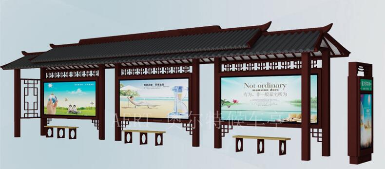 6.仿古候车亭灯箱外观:结构合理、美观大方、经久耐用;