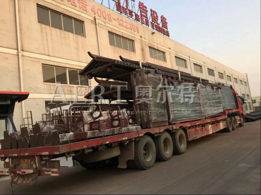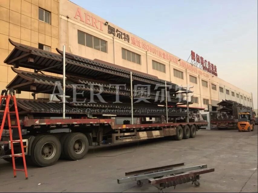 河南开封双层顶棚仿古公交候车亭发货。 宿迁市奥尔特中国户外公共设施综合供应商专业实力厂家户外城市家具一站式采购服务!